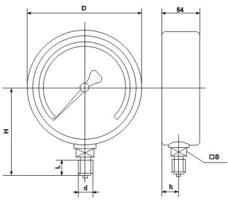 膜盒压力表外形尺寸: