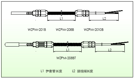2)铠装 pt100铂热电阻型号WZPK系列